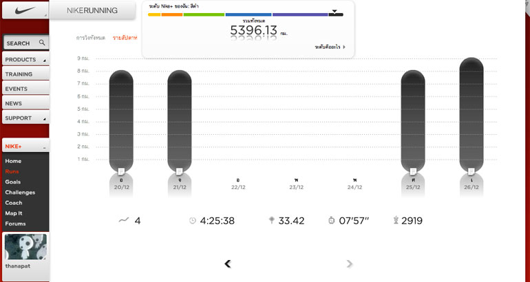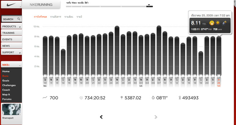 ต่อในเช้าวันเสาร์รู้สึกสามารถวิ่งต่อไปได้อีกจึงเก็บระยะทางถึงเก้ากิโลเมตรได้อีกครั้ง แต่หลังจากนั้นดูเหมือนร่างกายจะไม่ค่อยชอบให้วิ่งไกลเกินแปดกิโลมากนัก หากถึงคราววิ่งไกลจริง คงต้องฝึกซ้อมเสียก่อนให้พร้อมกว่านี้ สัปดาห์นี้จึงสะสมระยะทางได้ตามนี้