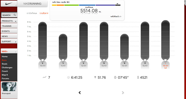 วันอื่นๆ ก็พยายามเก็บระยะทางแปดกิโลเมตรให้ได้จากนั้นก็ต้องรีบออกไปทำภารกิจข้างนอกบ้าน มาจบสัปดาห์ก็ลองวิ่งเกินไปอีกนิดหน่อยดู รวมๆ แล้วสามารถวิ่งได้ทุกวันและสะสมระยะทางไปได้เต็มเม็ดเต็มหน่วยอย่างนี้