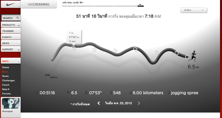 ผลการวิ่งเช้านี้มีสิ่งใหม่ปรากฏนั่นคือข้อมูลวิ่งในแต่ละจุดที่เป็นการบอกระยะทางทุกกิโลเมตรที่วิ่งได้มีข้อมูลเพิ่มขึ้นมาอีกชุดดังรูป