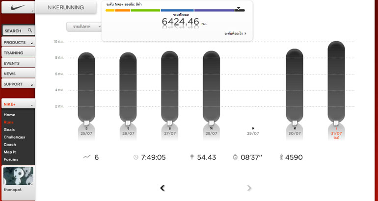 ตลอดทั้งเดือนแม้จะมีขึ้นมีลงบ้างแต่ก็ยังมีวันที่สามารถวิ่งสิบกิโลได้ถึงสามวันเลยทีเดียว