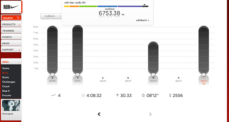เช้าวันพฤหัสจึงยังไม่กล้าออกวิ่งเต็มระยะทาง เกรงว่าขาจะไปไม่รอด จึงปรับลดแผนการวิ่งลง เสร็จแล้วก็มีคำเตือนว่าเจ้าเซนเซอร์ในรองเท้าใกล้ถึงเวลาหมดไฟ นี่มันอะไรกัน ยังใช้งานไม่ถึงสองร้อยชั่วโมงเลยด้วยซ้ำ