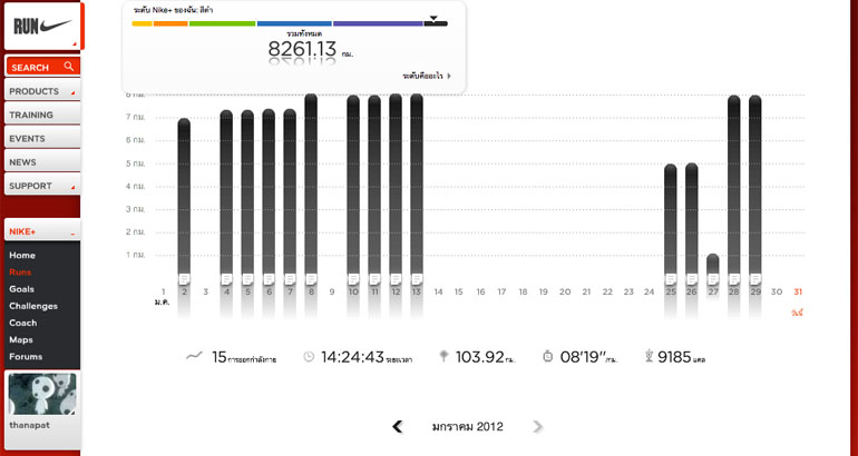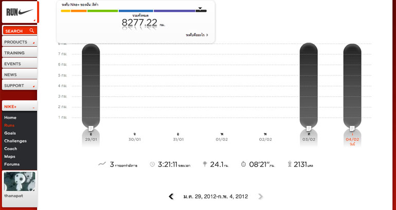 เริ่มเดือนใหม่กลางสัปดาห์กับข่าวการปิดปรับปรุงระบบเว็บไนกี้พลัส นอกจากภารกิจของครอบครัวแล้วยังมีสภาพร่างกายที่สิ่งผลให้กว่าจะได้ออกกำลังอีกครั้งก็เกือบหมดสัปดาห์ ระยะทางสะสมจึงได้เห็นเพียงเท่านี้ ด้วยแผนการวิ่งเดิม
