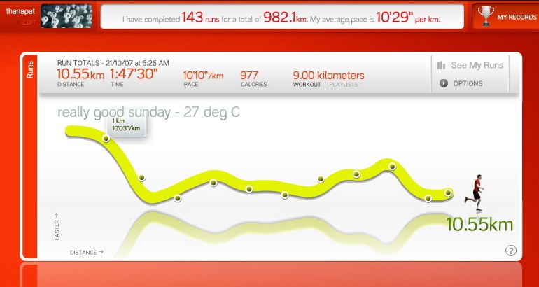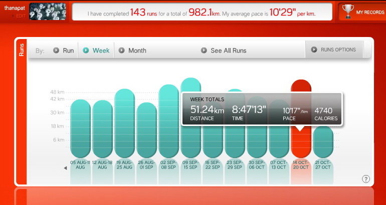 ส่วนการเพิ่มเป้าหมายในการเดิน ขณะนี้เป็นเรื่องลำบาก เพราะไม่สามารถทำความเร็วได้กว่านี้อีก ทำให้ต้องใช้เวลาในการเดินมากขึ้นแทน ยิ่งน้ำหนักตัวลดลง ก็ยิ่งเผาผลาญพลังงานช้าลง ต้องคงรูปแบบนี้ไว้สักระยะเพื่อประเมินผลอีกครั้งก่อนพัฒนาไป