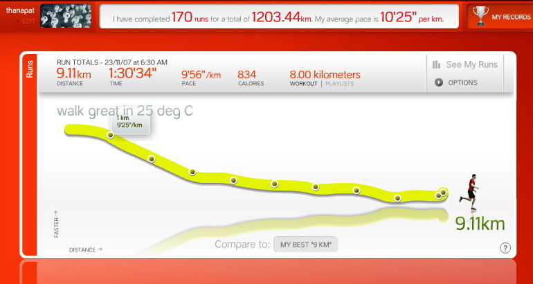 อากาศเย็นกลับมาอีกครั้ง เช้าตื่นขึ้นมาเดิน ยิ่งต้องเร่งความเร็วเพื่ออบอุ่นร่างกายในเบื้องต้นจนทำให้สามารถทำความเร็วสูงสุดในหนึ่งกิโลแรกได้อย่างงดงาม แม้สถิติตลอดสัปดาห์นี้จะไม่สวยงามอย่างที่เคย