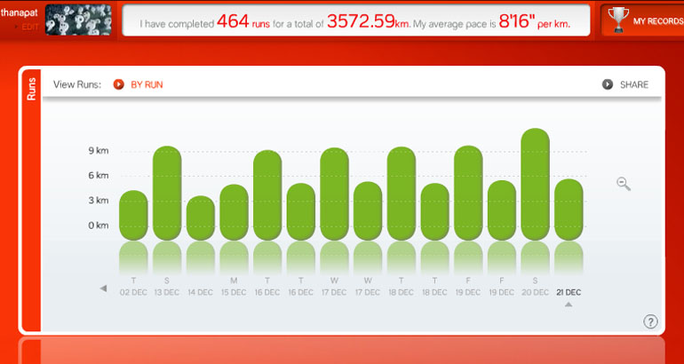 ได้วิ่งตอนเย็นด้วยแบบนี้รู้สึกติดใจแล้วเหมือนกัน ตั้งใจว่าจะวิ่งอย่างนี้ไปจนหมดเดือน เพื่อชดเชยระยะทางที่ขายหายไป หวังว่าเดือนใหม่ปีใหม่จะสามารถวิ่งแบบนี้ได้อีก