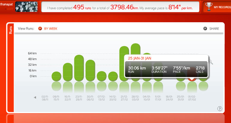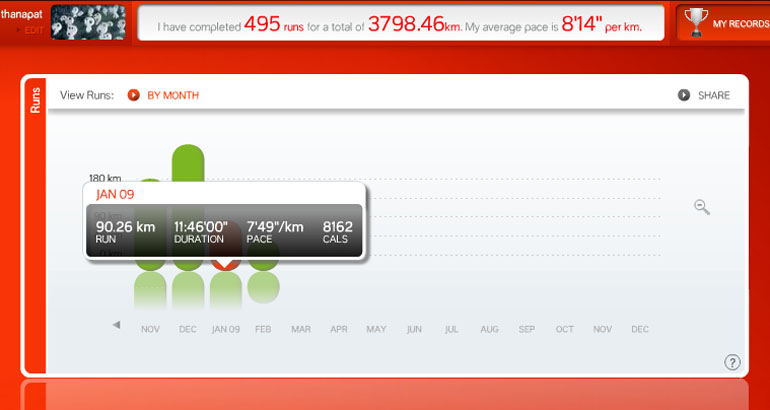 พอลองวางแผนให้ว่ิงให้ถึงร้อยกิโลแทน ก็กลายเป็นต้องหยุดวิ่งตอนเย็นไปสองวัน ถึงขาดระยะไปเพียงสิบกิโลเท่านั้นเอง