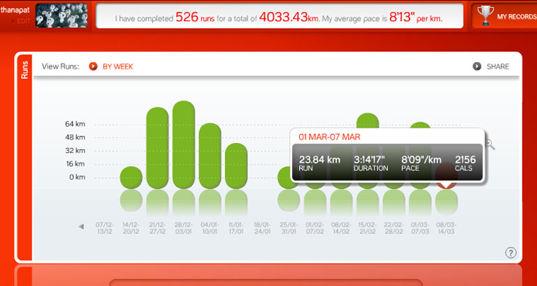 สัปดาห์นี้ก็เลือกที่จะพักในวันพุธเสียอีกหนึ่งวันและตั้งใจว่าจะวิ่งเก็บระยะทางต่อในวันที่เหลือของสัปดาห์ กลายเป็นว่าต้องหยุดพักยาวเพื่อรักษาอาการเกาต์กำเริบที่หลังเท้าขวา