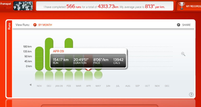 ผลการวิ่งของเดือนเมษายนนี้และสถิติของสัปดาห์จึงเป็นอย่างนี้