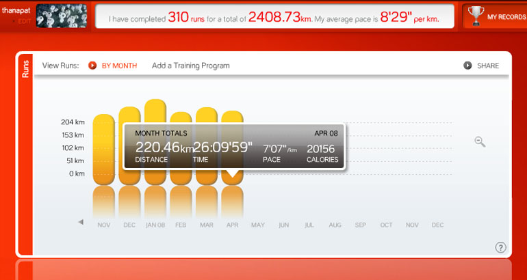 แม้ว่าจะเป็นการจบเดือนที่สถิติต้อยลงกว่าเดิม ก็ต้องบอกตัวเองอีกครั้งว่าอย่าไปยึดติดกับตัวเลขให้มากนัก สิ่งสำคัญคือความสม่ำเสมอในการออกกำลังมากกว่า แต่อุปสรรคก็ยังอยู่ที่ใจที่รู้สึกไม่สนุกเหมือนเดิมเสียแล้ว